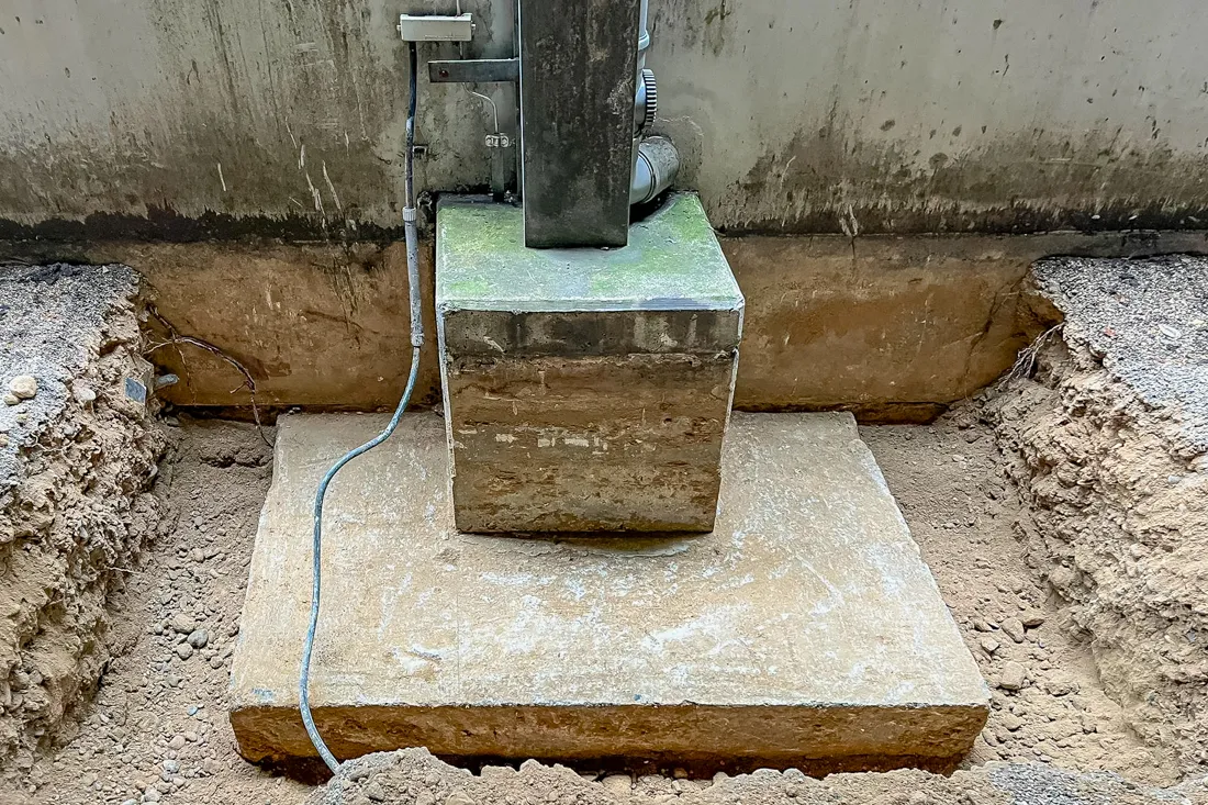 Mittels Injektionstechnik werden Risse und Hohlräume gefüllt, um die Bausubstanz vor eindringender Feuchtigkeit zu schützen.
